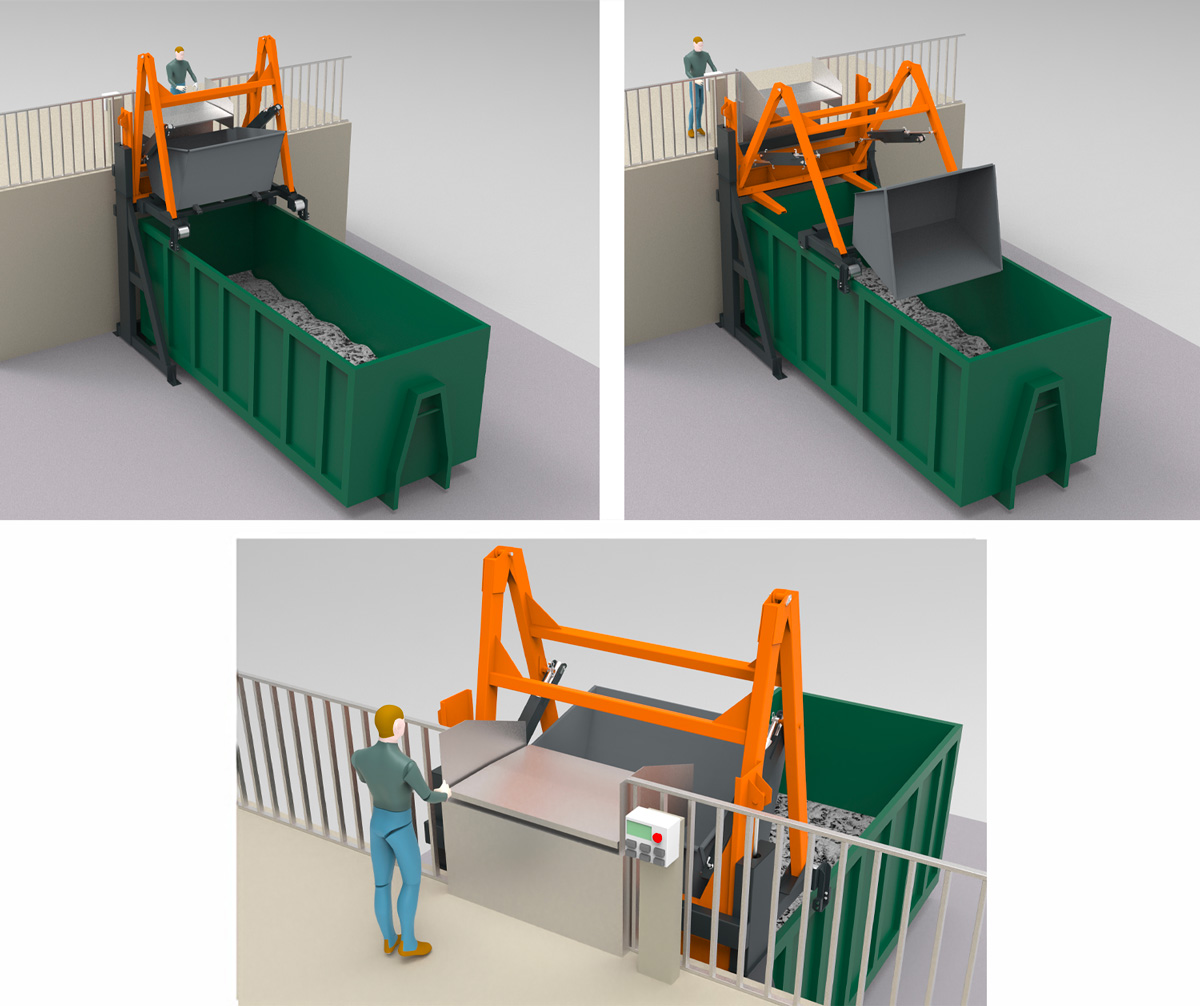 Récupération des déchets dans une trémie à hauteur de quai